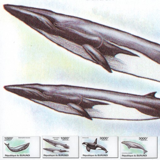 Seria, na znaczkach której widnieją następujące gatunki wielorybów: