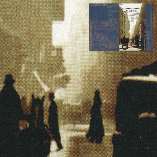 Znaczek w bloku upamiętniający 900-lecie miasta Zagrzeb.