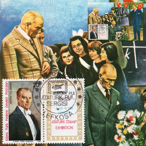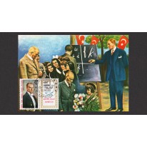 Znaczek z przywieszką na karcie maksimum promujący wystawę filatelistyczną upamiętniającą setną rocznicę urodzin Mustafy Kemala Ataturka, pierwszego prezydenta Republiki Tureckiej.