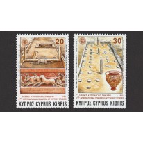 Na znaczkach widnieją stanowiska archeologiczne z późnej epoki brązu: miejsce kultu Westy z okolic Alassy i sala kolumnowa z okolic Kalavasos.