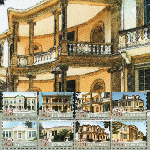 Seria obiegowa, na znaczkach której widnieją cypryjskie budynki w stylu neoklasycystycznym, kolejno: