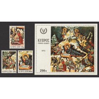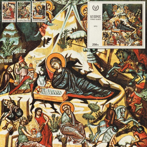 Na znaczkach widnieją średniowieczne freski z kościoła Timios Stavros tou Agiasmati przedstawiające narodziny Chrystusa.