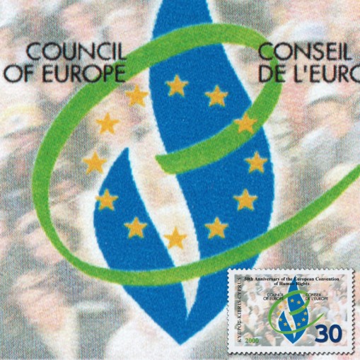 Znaczek upamiętniający 50. rocznicę europejskiej konwencji praw człowieka.