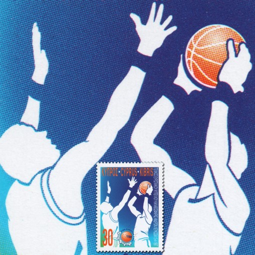 Znaczek upamiętniający mecze finałowe Pucharu Europy w koszykówce mężczyzn rozegrane w Nikozji.