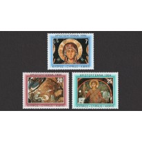 Na znaczkach widnieją kolejno: głowa Madonny z około 1500 roku, narodziny Chrystusa z 1192 roku oraz archanioł Michał z około 1500 roku.