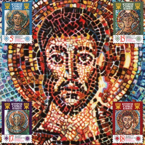 Seria, na znaczkach której widnieją pochodzące z VI wieku mozaiki z kościoła w Kanakarii przedstawiające kolejno archanioła, Jezusa, świętego Jakuba i świętego Mateusza.