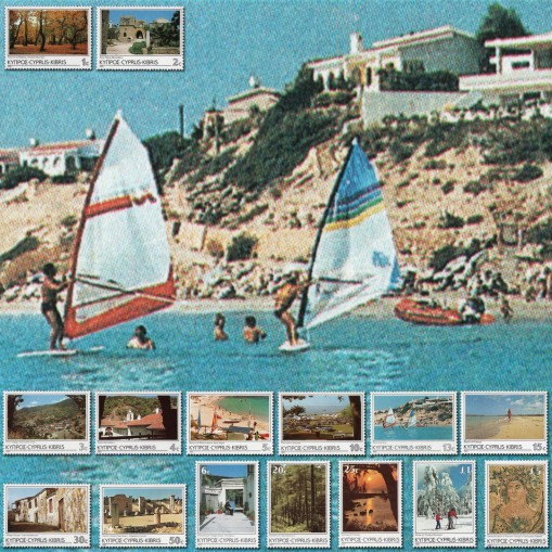 Na znaczkach widnieją pejzaże cypryjskie, kolejno: