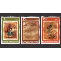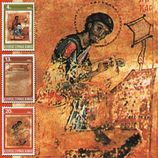 Na znaczkach widnieją iluminacje średniowiecznego rękopisu ewangelii z Eptakomi.