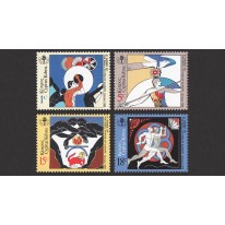 Na znaczkach widnieją kolejno: rzut dyskiem, rzut oszczepem, zapasy i bieg, a także anioł z wieńcem laurowym.