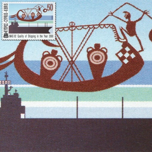 Znaczek upamiętniający międzynarodową konferencję na temat transportu morskiego w Nikozji.