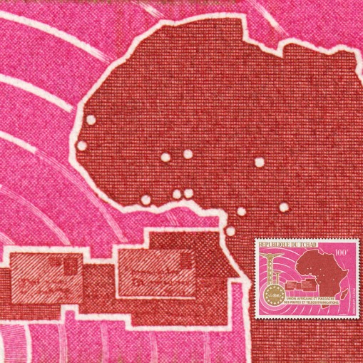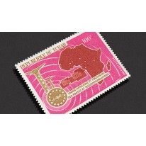 Na znaczku przedstawiono mapę kontynentu afrykańskiego, listy i słupy telekomunikacyjne.