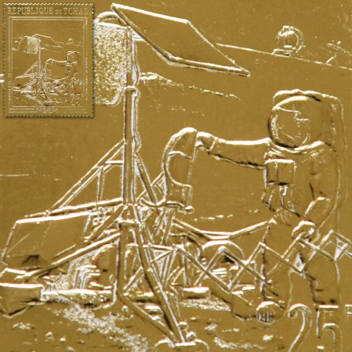 Złoty znaczek upamiętniający amerykańskie misje kosmiczne „Apollo 11” i „Apollo 12”.