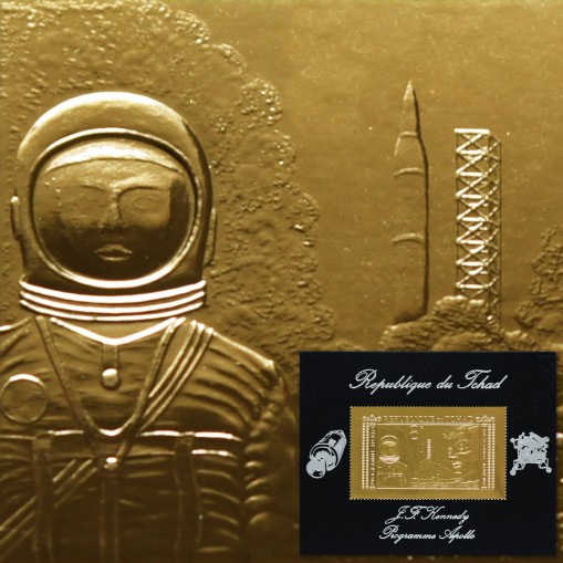 Złoty znaczek upamiętniający amerykański program misji kosmicznych Apollo.