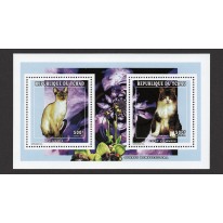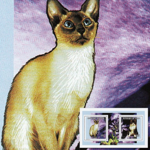 Seria w bloku, na znaczkach której widnieją koty: syjamski i domowy.
