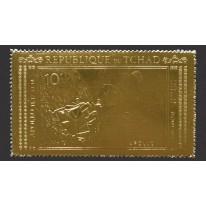 Złoty znaczek upamiętniający amerykańskie misje kosmiczne „Apollo 11” - „Apollo 14”.