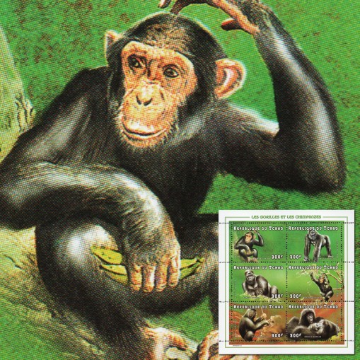 Seria w arkuszu, na znaczkach której widnieją szympans zwyczajny i goryl.