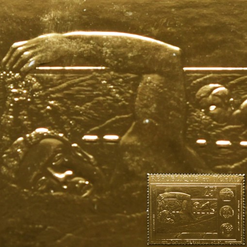 Złoty znaczek zapowiadający letnie igrzyska olimpijskie w Monachium.