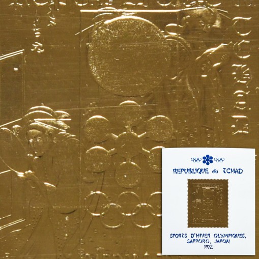 Złoty znaczek zapowiadający zimowe igrzyska olimpijskie w Sapporo.
