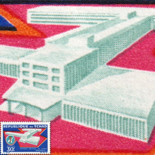 Znaczek upamiętniający otwarcie regionalnej kwatery głównej Światowej Organizacji Zdrowia (WHO) w Brazzaville.