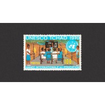 Znaczek upamiętniający Międzynarodowy Rok Edukacji. Widnieją na nim: szkolna klasa i dwie osoby dzierżące pochodnie, czyli „kaganki wiedzy”.