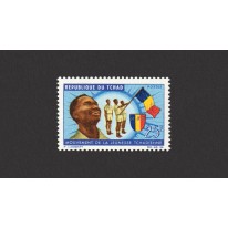 Znaczek promujący ruch młodzieżowy w Czadzie. Widnieje na nim młodzież z flagą kraju.