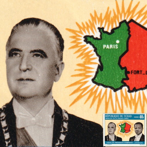Znaczek upamiętniający wizytę prezydenta Francji Georges’a Pompidou w Czadzie.