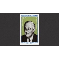 Znaczek wydany z okazji 25. rocznicy śmierci prezydenta USA Franklina Delano Roosevelta.