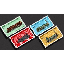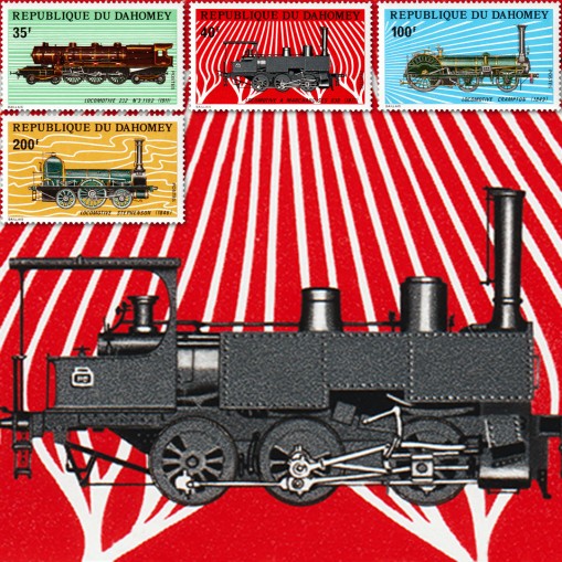 Na znaczkach przedstawiono stare, wspaniałe lokomotywy, które ongiś były używane na kontynencie afrykańskim.