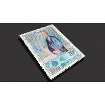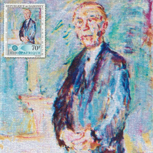 Na znaczku przedstawiono portret Konrada Adenauera, namalowany przez Oskara Kokoschkę.