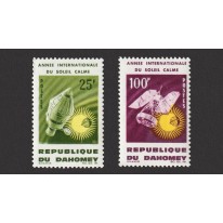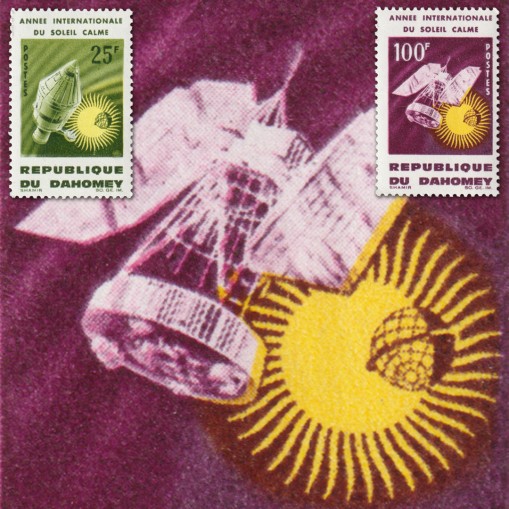 Seria wydana na okazję Międzynarodowego Roku Spokojnego Słońca - serii skoordynowanych programów badawczych przeprowadzonych w latach 1964-65, polegających na obserwacji aktywności Słońca i jej wpływu na Ziemię. Naukowcy z ponad 70 krajów połączyli wtedy siły, żeby lepiej zrozumieć współoddziaływanie Słońca i Ziemi. Znaczki przedstawiają heliograwiurę satelity na tle Słońca.