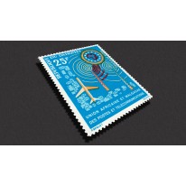 Znaczek nagłaśniający działalność Związku Panafrykańskiej oraz Madagaskarskiej Poczty i Telekomunikacji.