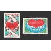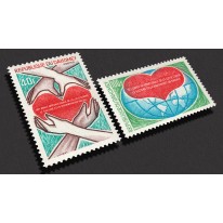 Na znaczkach przedstawiono serce, podtrzymywane przez ręce ludzi różnych ras, oraz serce dominujące nad całą kulą ziemską. Piękne alegorie.