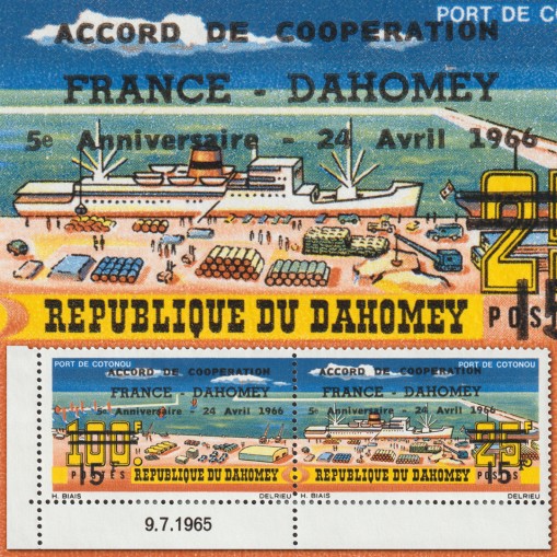 Są to znaczki wydane w roku poprzednim, przedstawiające port w Kotonu, tym razem z nadrukami „ACCORD DE COOPERATION FRANCE - DAHOMEY 5e Anniversaire - 24 Avril 1996”.