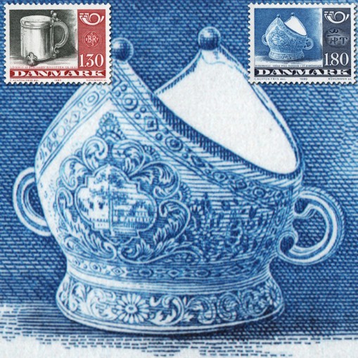 Na znaczkach widnieją kolejno srebrny kufel i miska w kształcie biskupiej mitry.