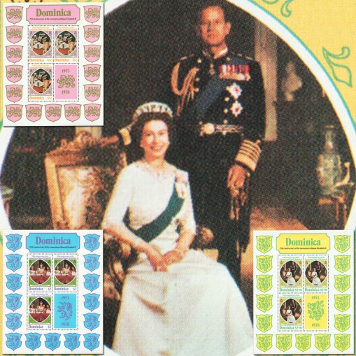 Znaczki w blokach upamiętniające 25. rocznicę wstąpienia na tron królowej Elżbiety II.