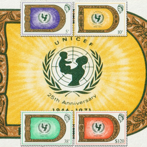 Znaczki upamiętniające 25. rocznicę powstania Funduszu Narodów Zjednoczonych na rzecz Dzieci, UNICEF (od ang. United Nations International Children’s Emergency Fund).