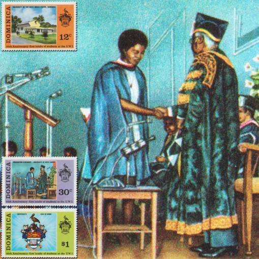 Znaczki upamiętniające 25-lecie istnienia Uniwersytetu Indii Zachodnich (ang. West Indies University).