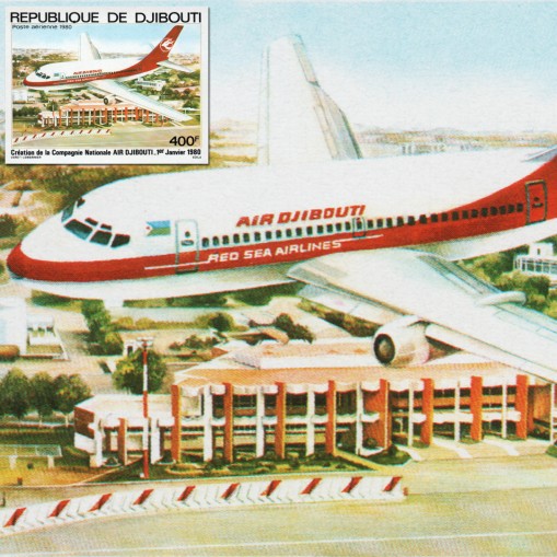 Znaczek upamiętniający powstanie linii lotniczych Air Djibouti.