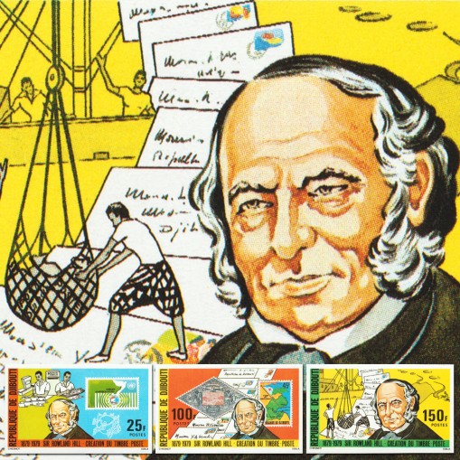 Na znaczkach przedstawiono walory wydane dla Dzibuti w 1894 i 1977 roku, portret Hilla oraz załadunek poczty na statek.