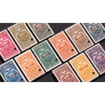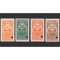 Zestaw 12 różnych znaczków skarbowych wydanych w Ekwadorze w roku 1944.