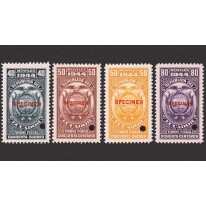 Znaczki zostały urzędowo przedziurkowane oraz umieszczono na nich nadruk „SPECIMEN", czyli przygotowano je do wykorzystania jako wzorce dla urzędników ekwadorskich, którzy mogli w ten sposób porównać znaczek na dokumencie z oryginałem. Było to istotnym, ponieważ oryginalne znaczki były używane, gdy trzeba było pobierać różne podatki skarbowe lub opłaty urzędowe (stąd napis „TIMBRE FISCAL" na znaczkach).