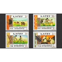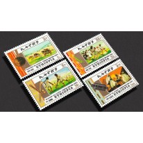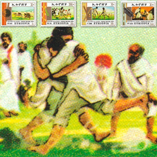 Na znaczkach przedstawiono tradycyjne sporty uprawiane w Etiopii, kolejno: