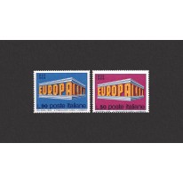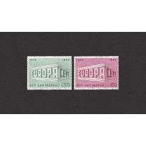 Znaczki tej emisji mają rozpoznawalny wśród filatelistów dizajn antycznej świątyni utworzonej w wyrazów EUROPA i CEPT, będący projektem dwóch włoskich grafików (Luigi Gashara i Giorgio Belli). Jedynie znaczek z Liechtensteinu ma odrobinę odmienną szatę graficzną.