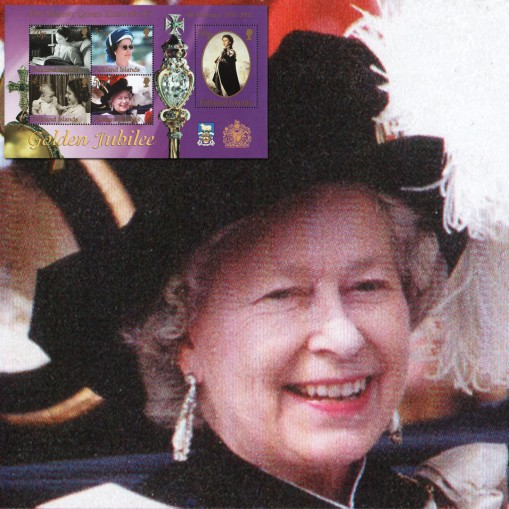 Seria w bloku upamiętniająca 50. rocznicę wstąpienia na tron królowej Elżbiety II.