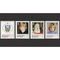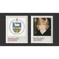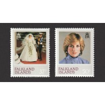 Na znaczkach widnieje herb Falklandów i portrety księżnej Walii, a także ślub Diany i księcia Karola.