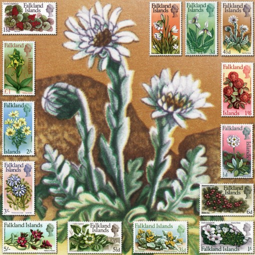 Seria obiegowa, na znaczkach której widnieją następujące gatunki flory występujące na Falklandach: