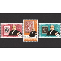 Na znaczkach widnieją wczesne walory falklandzkie oraz pierwszy znaczek świata, a także portret Hilla.