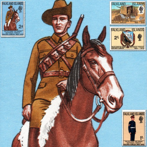 Znaczki upamiętniające 50. rocznicę powstania falklandzkich sił obrony.