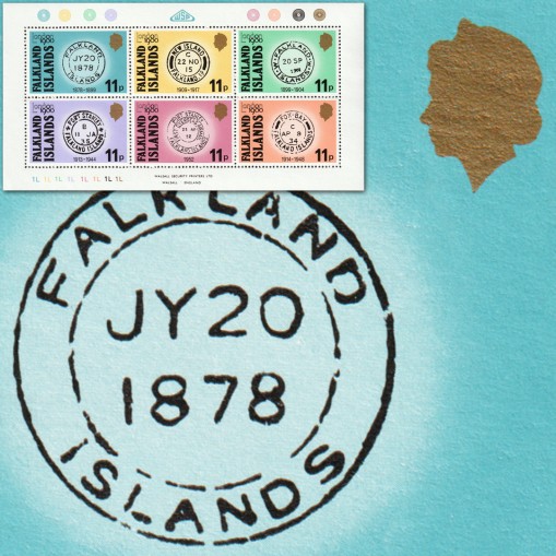 Na znaczkach przedstawiono historyczne kasowniki używane na Falklandach, kolejno: