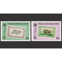 Na znaczkach widnieją trzy znaczki wydane na Falklandach w 1933 roku z okazji stulecia brytyjskiej administracji Falklandów, przedstawiające kolejno: